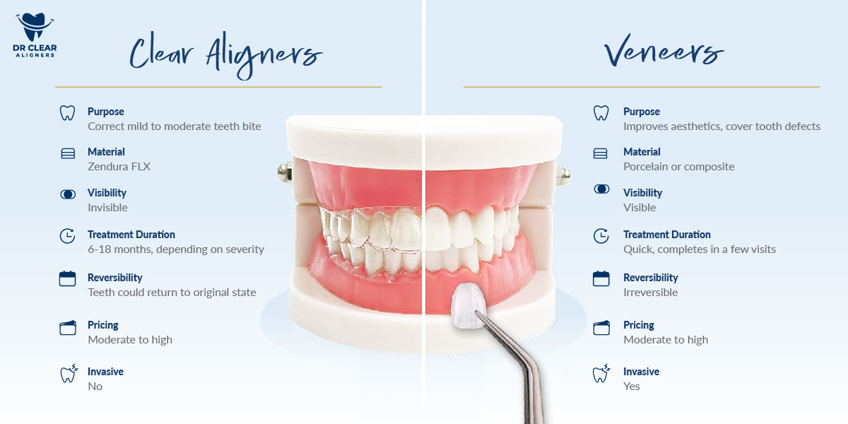 While veneers are a cosmetic treatment and generally don’t have a significant impact on your health, clear aligners are an orthodontic treatment that can benefit your oral health.